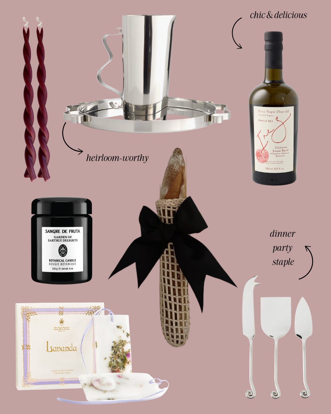 A few other fabulous host gifts: hand dipped twisted beeswax candlesticks from GLOAM or a nice bottle of olive oil from Inez. If you really want to impress: this botanical candle from Sangre de Fruta.