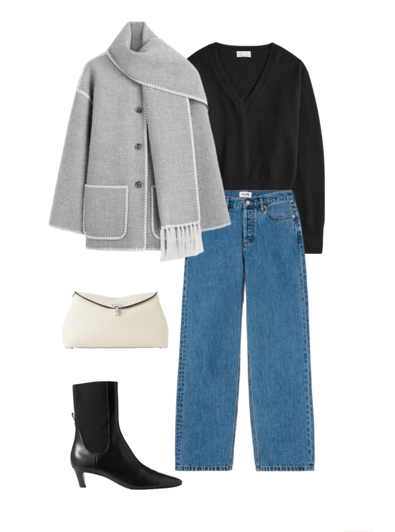 The scarf jacket is doing all the heavy lifting here. The key with statement pieces is not overthinking the rest. Keep everything else clean and simple so the jacket can be the star. It’s the kind of piece that instantly makes jeans and a tee (or simple sweater) look effortless but special.